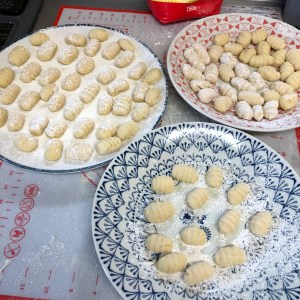 Gnocchi making was fun and it ended up tasty but I would not be looking to do this again without a few extra pair of hands to offer tribute to the god of gnocchi…