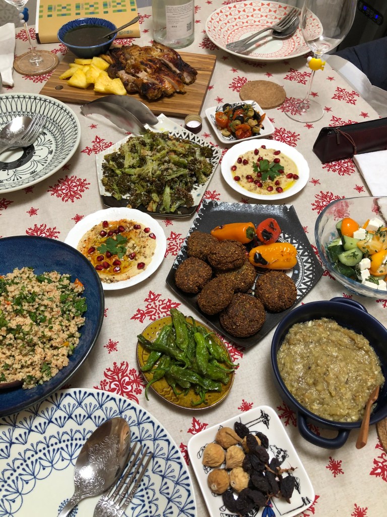 For the full table i had roast chicken, hummus, roast cauliflower with parmesan, fried shishito, tabbouleh, cucumber salad and chopped roasted eggplant.